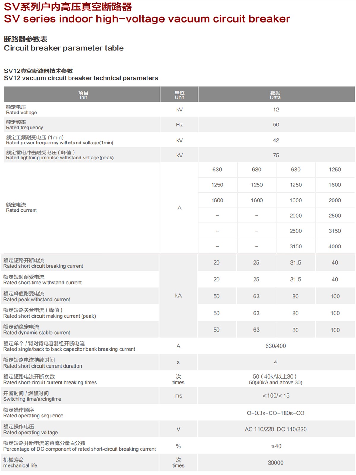 SV12、SV24、SV40