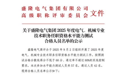 關于盛隆電氣集團2025年度電氣、機械專業技術職務任職資格水平能力測試合格人員名單的...